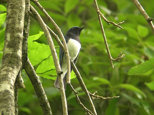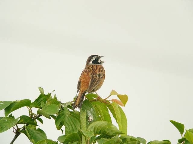 お気に入りの樹にとまり,樹下を人が通り過ぎるまで囀っていました。 |