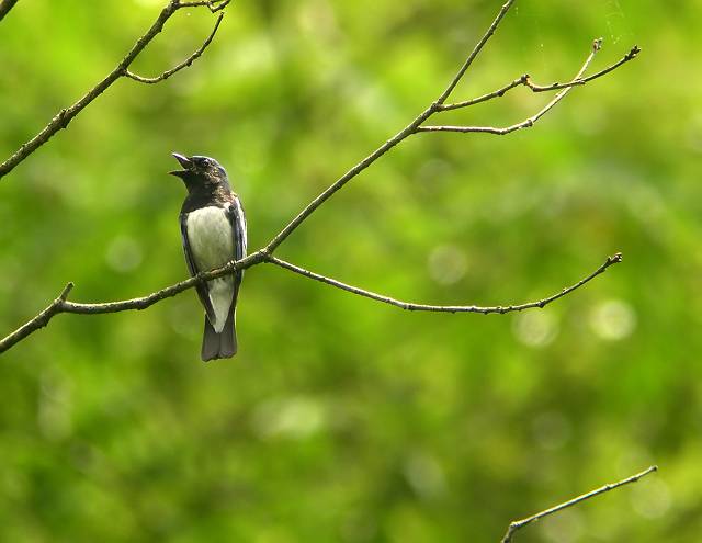 目の前の樹木にとまったかと思うと囀りを始めました。思わずシャッターを押しました。 |