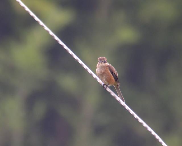 台風の影響で強い風が残っていました。歩いていると,右手方向からキジバトが飛んできて前方の枝にとまりました。でも,キジバトとは様子が違うようです。レンズを向けるとこの鳥でした。 |