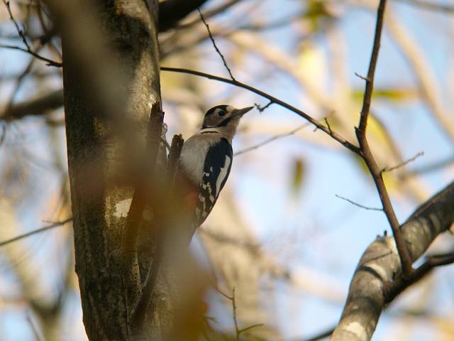 アカゲラ 04.11.27 印旛郡 県内で見られるとは思っても見ませんでした。ケッ、ケッと幹に飛び移っては餌を探しながら登っていき、また別の幹に飛び移ることをしていました。 |