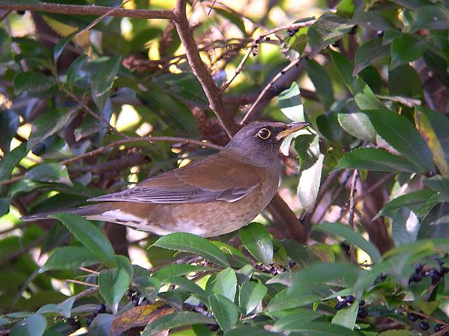 シロハラ 04.11.27 印旛郡 低木の枝の中に入り、じっとしていたかと思うとこの木の実を食べ出しました。そして休み、また食べることを繰り返しました。今季初確認です。 |