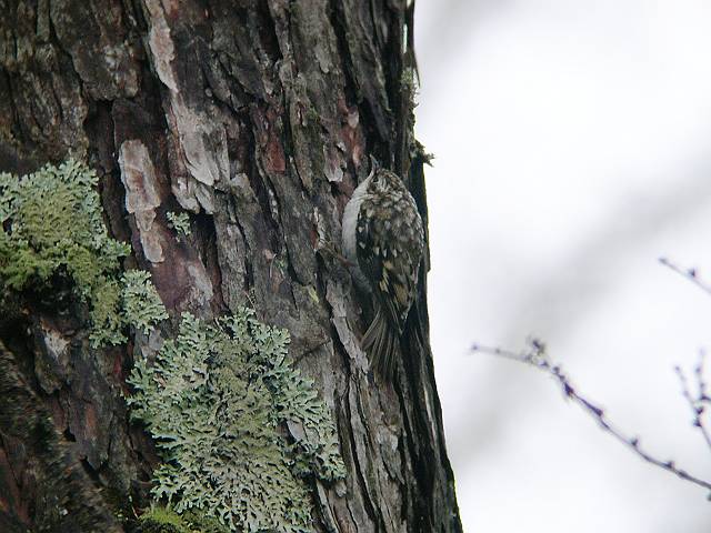 動きが速いのでデジスコにおさめるのは一苦労です。ここでは毎年見ています。それにしても、樹皮の色にそっくりです。 |