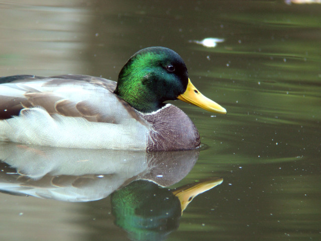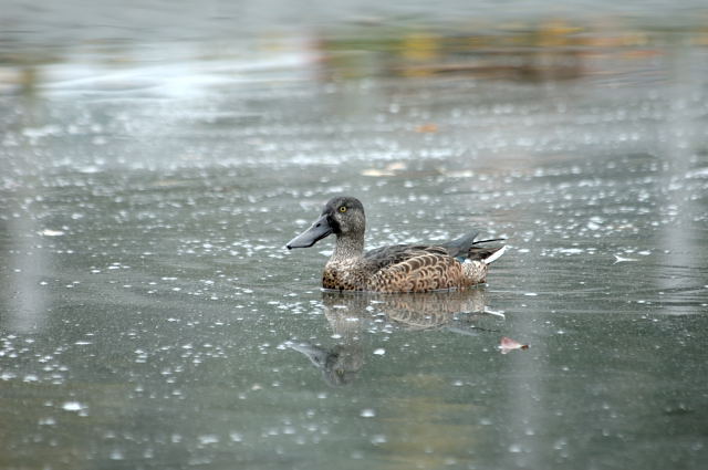 人影を見ると、池の縁の繁みに引っ込んでしまい、あきらめかけました。でも、カルガモを撮影しているとその横にひょっこり現れました。全体的に色が薄いように見えます。冬羽だからでしょうか。若いからでしょうか。 |