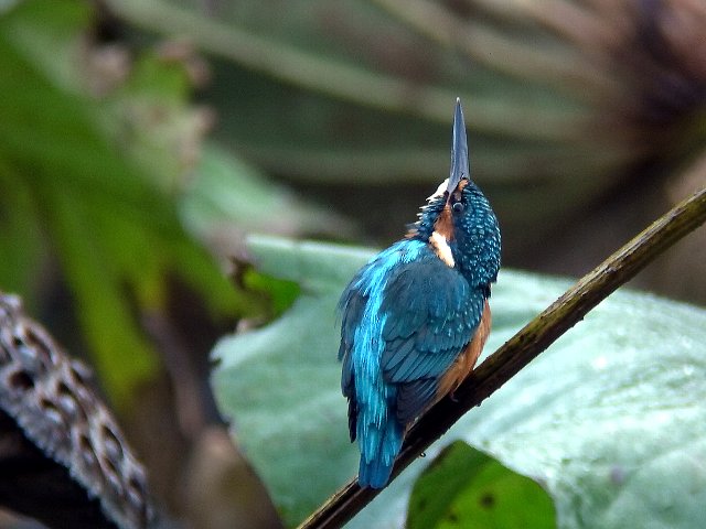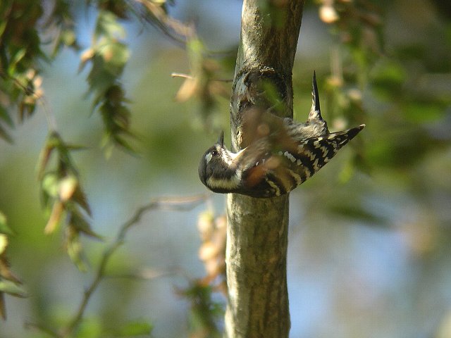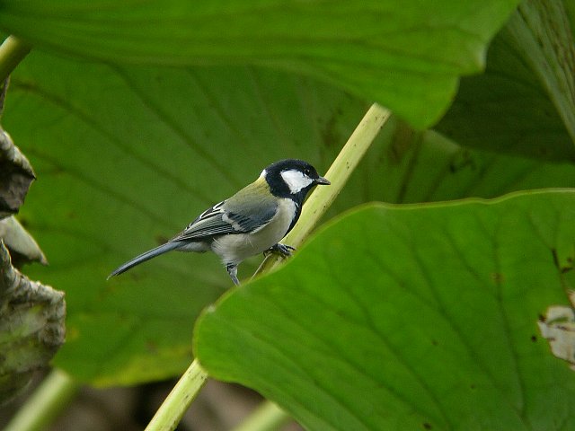 体はじっとしているのですが、頭を絶えずあちらこちらに動かして毛虫を探しているように見えました。ときおりこのように首を伸ばすようにすることもありました。 |