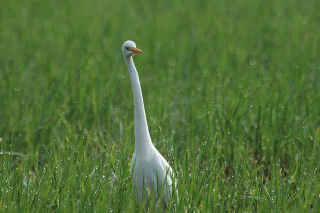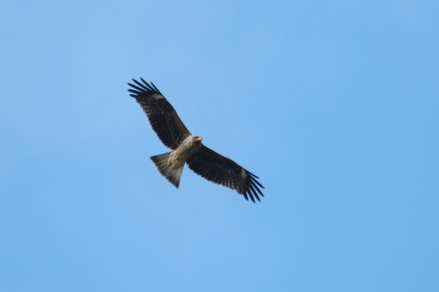 個体数はまだ少なく、警戒心も強いので姿を確認するのに苦労します。藪の中に入り、なかなか姿をみせません。ピンぼけですが、証拠写真です。 |