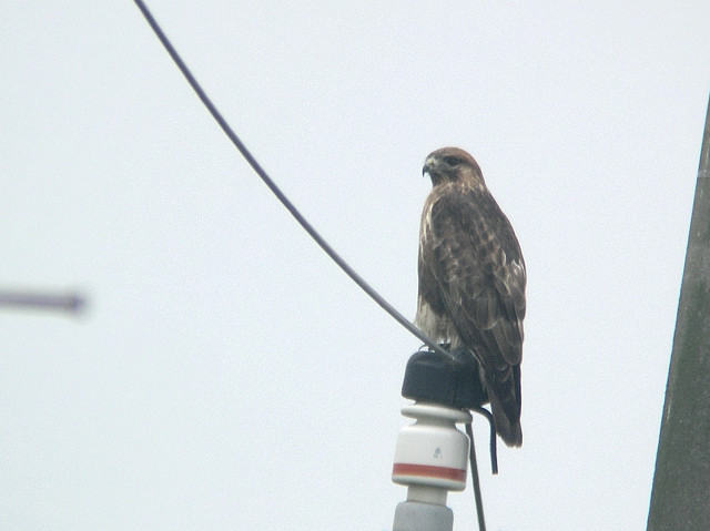 あそこにノスリがいますよ、と教えていただいて撮影しました。私にとって猛禽は、近づける限度の検討がつきづらい鳥です。今回も近づきすぎて離れていってしまいました。 |
