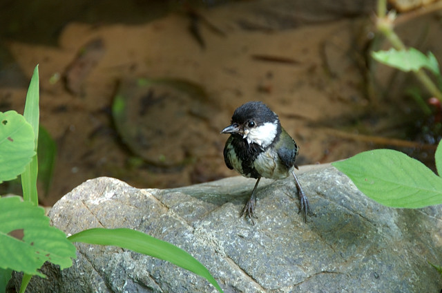 巣立ちのラッシュなんでしょうね。 花を探してうろうろしていると、水たまりのような小さな池で、シジュウカラの赤ちゃんが水浴びしていました。慌ててデジガンを取り出して撮影しました。私をおそれるような感じではなく、水浴びがすんだから石の上に上がってきて、落ち着き払って飛び去ったという風でした。