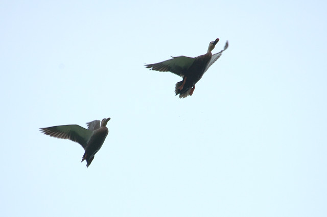 カルガモは田んぼの上をよく飛んで移動していました。