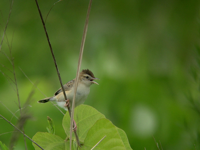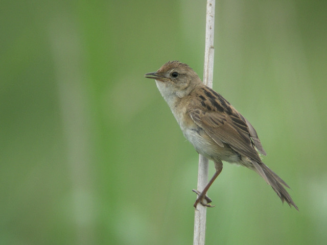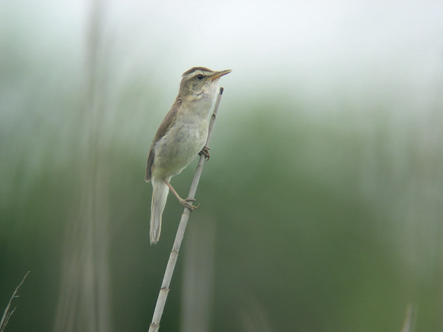 オオセッカは葦をのぼってきてさえずり、飛び上がってさえずりながら別の葦に止まり、またさえずることを繰り返していました。セッカよりずっと低く、飛び上がる時間もわずかです。
