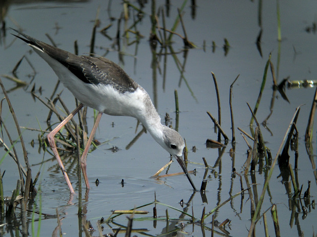 セイタカシギは谷津干潟の芝生のほうにある観察窓口から間近で見ることができました。一心不乱にくちばしを泥につっこんで採食していました。 |