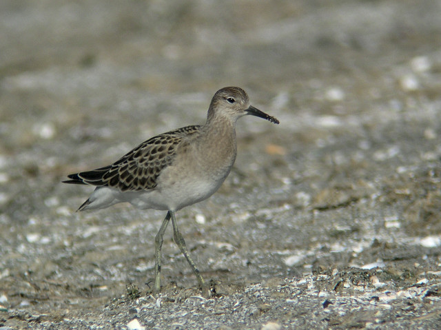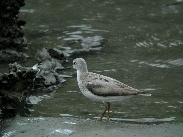 キョウジョシギに混じって見慣れないシギがいます。とりあえず撮影。あとで聞くと、エリマキシギでした。図鑑を見ると雄の夏羽には変化があるようですが、一度見てみたいものです。 オオソリハシシギも三番瀬で撮影しましたが、谷津干潟にはたくさんいました。シロチドリをじっと眺めた後だったのでずいぶん大きく感じました。