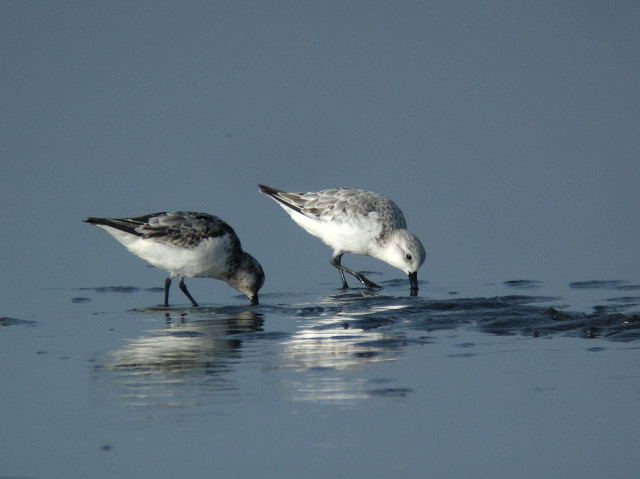 ミユビシギも初見です。図鑑をみるとハマシギに似ているので、私には特定困難なので近くで観察しておられる方に伺いました。水際を歩きながら餌をついばんでいました。複数羽で群れていました。