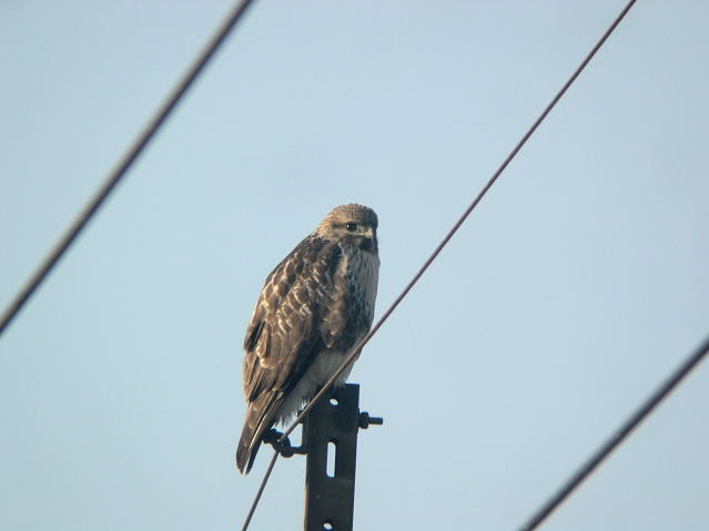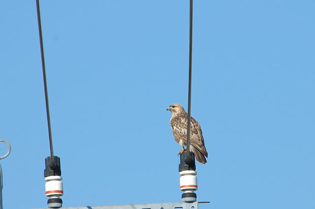ノスリは電柱に止まっていましたが、気がつかずに車で真下までいってしまいました。飛び立ちましたが、近くにとまってくれました。ノスリの優しい目が何ともいえません。