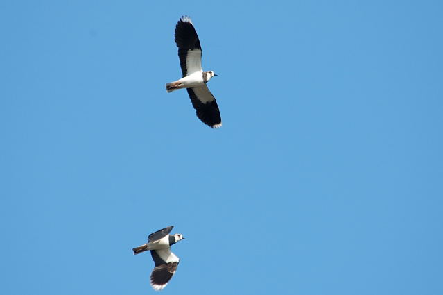 タゲリは群れから離れて採食しているのもいます。群れが一斉に飛び立った姿は迫力を感じます。 |