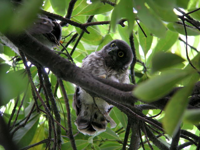![]() | 07.07.21-22 千葉市 ・アオバズク ・アオバズク ・オオタカ アオバズクは7月20日夕方に3羽目が巣立ったようです。3羽とも元気で、親に見守られています。じっと観察していると、いろいろな仕草をするので楽しい時間です。 3枚目はオオタカの幼鳥と思います。大きな声で鳴きながら飛んできて、近くの枝にとまりました。 |