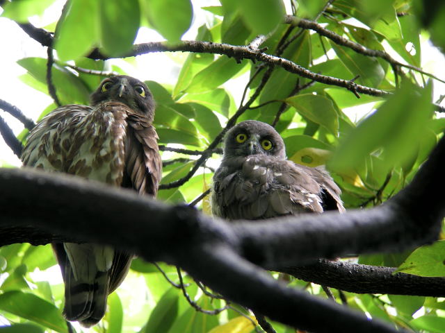 ![]() | 07.07.16 千葉市 ・アオバズク ・アオバズク 2羽を見かけました。上は、木の上の方にいた個体、下は下の方にいた個体。頼りない推測では、上が雄で下が雌でははないかと思います。雛は元気に育っているようです。今年は、すべての雛が無事に巣立って欲しいと願わずにはいられません。 |
