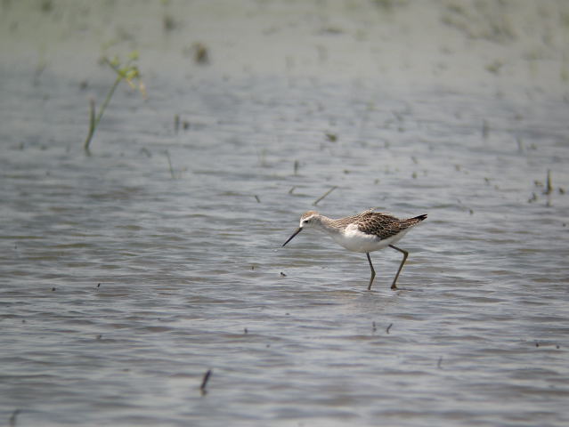 コアオアシシギとアメリカウズラシギは初見です。いずれも一緒させていただいた知人に教えてもらったものです。コアオアシシギはすらりとした体つきで、美しい鳥です。もう少し近くで見てみたい鳥です。アメリカウズラシギはウズラシギと思っていました。後に、写真をよく見るとアメリカウズラシギとわかったものです。 |