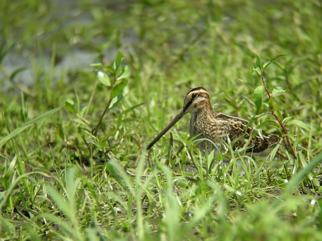アオアシシギは自分で見つけた休耕田にいました。サギに混じって、田んぼのあぜ道の縁に数羽いました。
