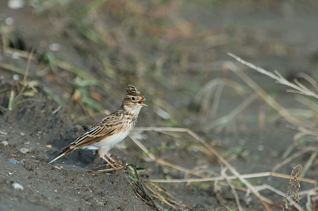 車道脇にはヒバリがいて、車から一眼で撮りました。 |