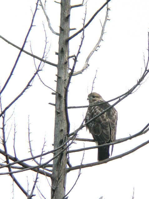 オオタカは自信がないのですが、オオタカ幼鳥と思います。車道近くの灌木にいました。そっとデジスコを用意して撮りました。