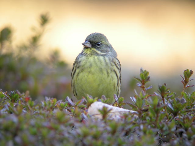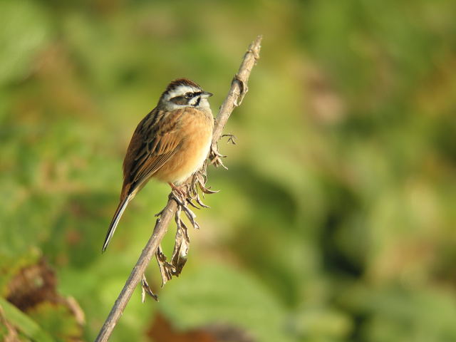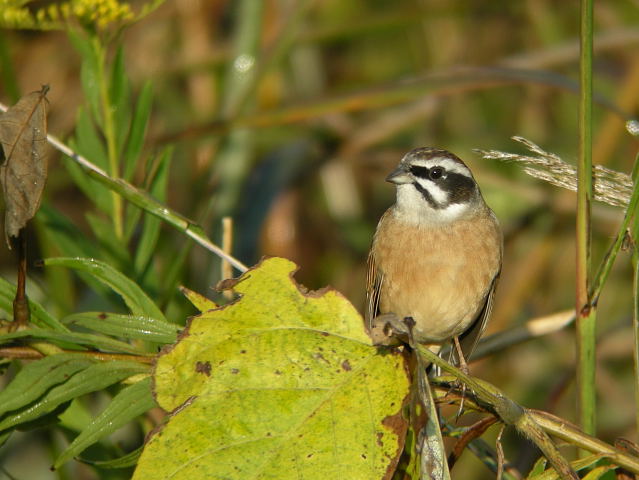沼の土手にのぼって芦原を見ると、ホオジロがあちらこちらにいます。でも、遠く、追いかけると逃げてしまいます。ちょうど反対側を振り返ったとき、向こうから近くにやってきてくれました。