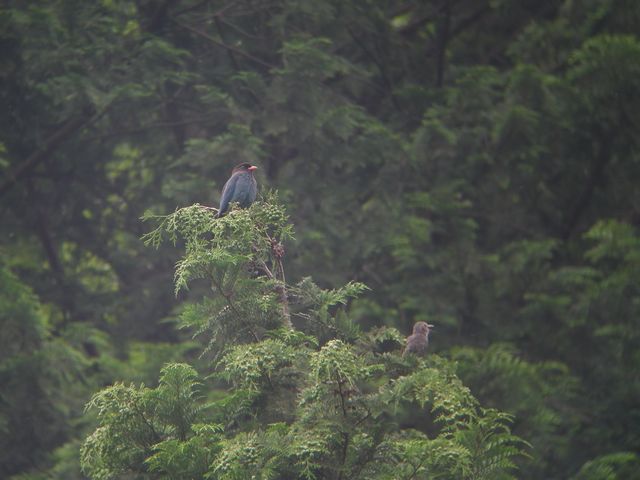 08.06.08 ・ブッポウソウ ・オオルリ ヒヨドリがブッポウソウにちょっかいをかけていました。大きさはほぼ同じくらいで、あまり動じてはいない様子でした。それより、お相手はどうしたのでしょうか。 地元の方は、このオオルリは若いので、あまりきれいではない、とおっしゃっていましたが、私にとっては、姿を見ただけでも満足です。 |