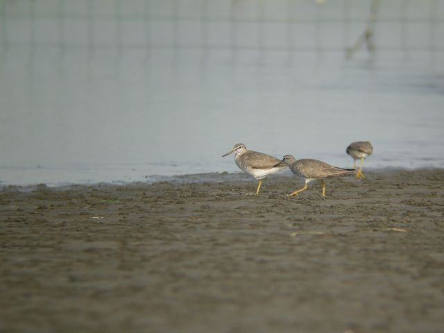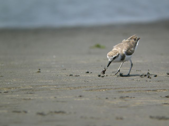 08.07.05 三番瀬 ・カラシラサギ ・オオメダイチドリか カラシラサギ(写真左)は、遠くの堤防の上で、フナムシを捕って食べているようでした。そのうち、近くに飛んできたのですが、ピント合わせに手こずっているあいだに飛んで行ってしまいました。 オオメダイチドリは、メダイチドリよりは嘴が長く、足も長く色も違うらしいのですが、私にはなかなか区別ができません。難しいです。 |