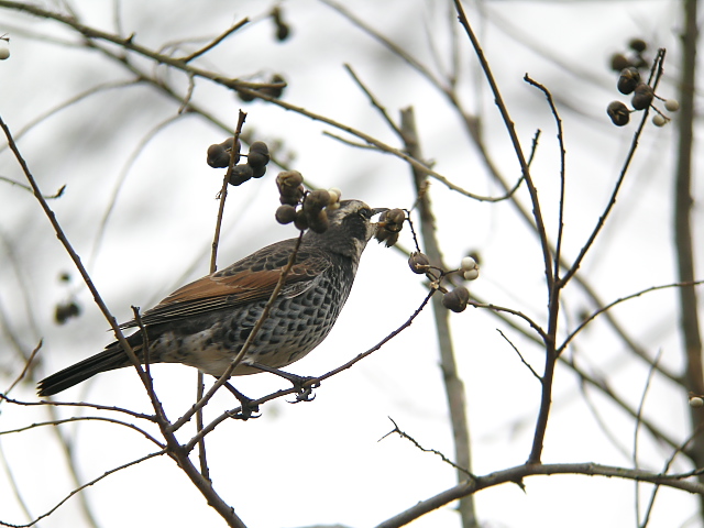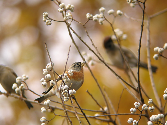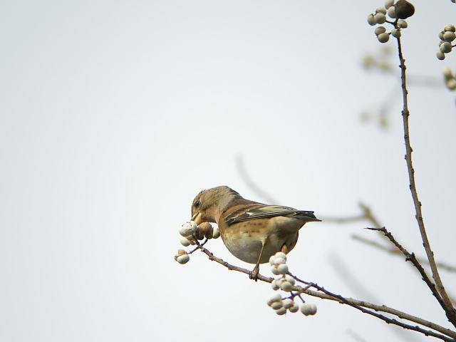 アトリが、ナンキンハゼの実やアキニレの実を食べにきていました。ここではシメも多くみました。