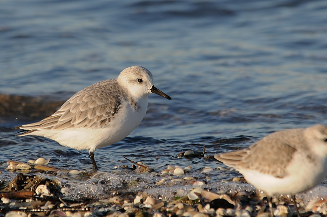 ハマシギも同じように採餌していたのですが、ときどき波打ち際から離れて砂浜にあがってきました。ミユビシギよりは黒っぽく感じ、嘴が長めです。