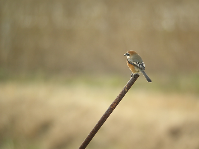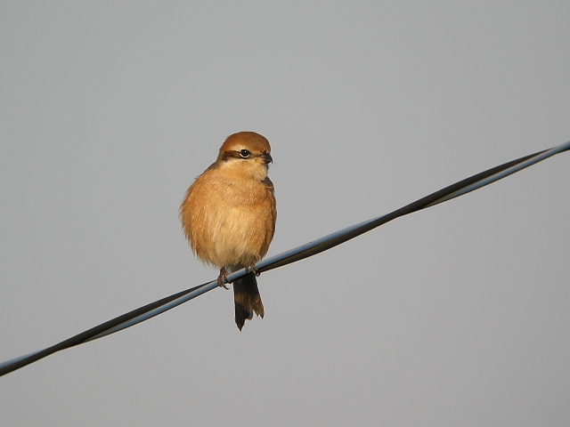 モズは電線で羽繕いしていました。