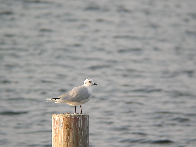 ズグロカモメは谷津干潟です。潮が満ちてきていて、ずっと杭の上にとまっていました。