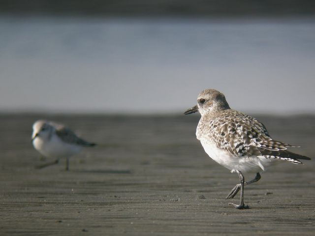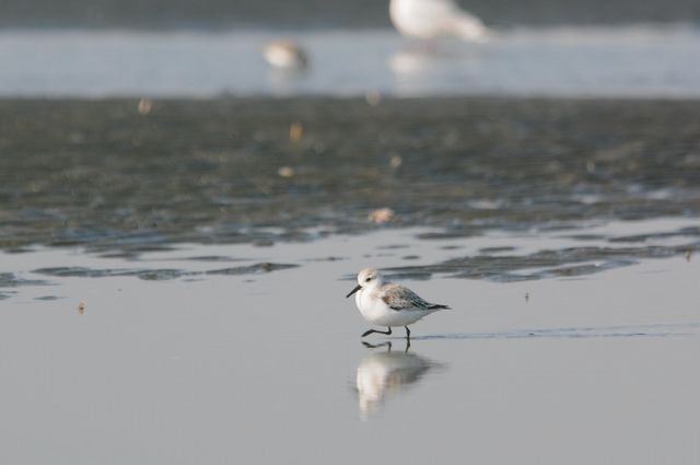 晴れて気持ちの良い鳥見ができました。ミユビシギは、ハマシギと比べてずんぐりとしていて白っぽく見えます。