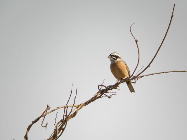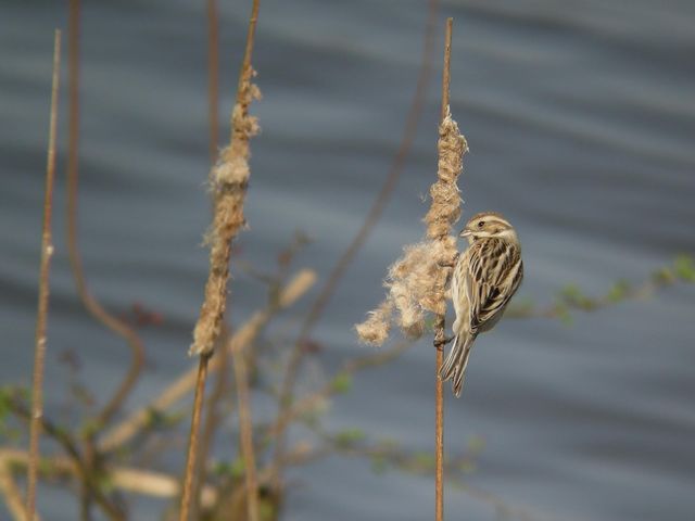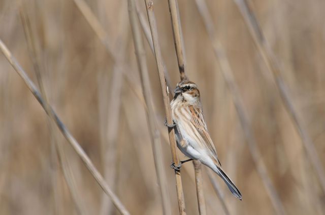 オオジュリンの姿もよく見ました。葦の茎を割り、茎の中から餌をとりだしているのもいました。頭が少し黒っぽくなってきている個体も見ました。
