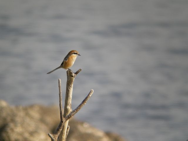 海岸に出ると、モズ、イソヒヨドリを見ました。カモ類なども見ましたが、逆光のため写せませんでした。