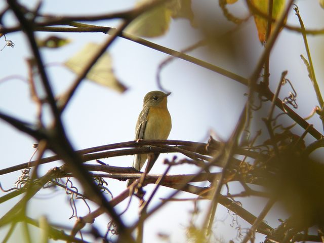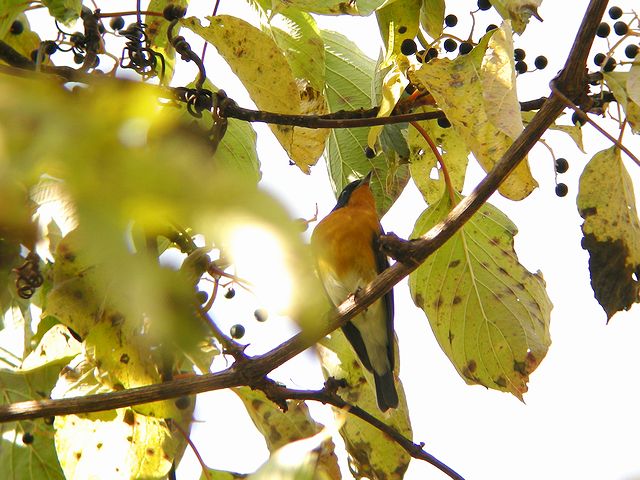 09.10.10 公園 ・キビタキ ・ゴイサギ 公園でキビタキの姿を見たのは春以来です。カワセミに近づこうとしたら、すぐ近くにいたらしく、枝に飛び上がりました。1枚写して、もたもたしていたら高い枝に移ってしまい、見失ってしまいました。 ホシゴイは、食事中を邪魔してしまったようで、警戒してこの枝に移り、そして離れて行きました。 |