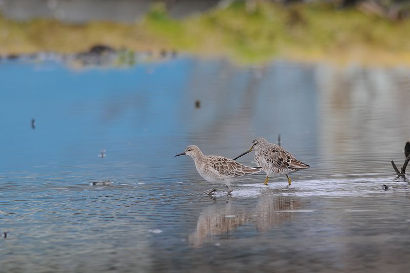 10.03.26 稲敷市 ・オオハシシギとエリマキシギ ・タカブシギ ・エリマキシギ 1、2枚目はD300 300mmF4×1.4他はデジスコ タカブシギは、ヨーロッパトウネンらしきトウネンと一緒に行動していました。現地に到着すると、すぐに近くに降りて採食していました。 そのうち、オオハシシギとエリマキシギの群れが降りてきて、蓮田の縁のほうで採食を始めました。美しい色のエリマキシギでした。 |