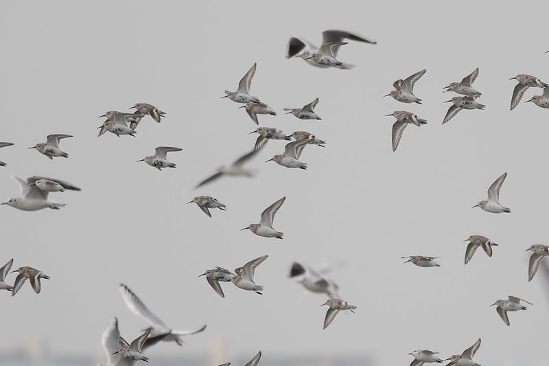10.04.03 三番瀬 ・ハマシギ ・ダイシャクシギ ・タヒバリ ・オオジュリン ・オオジュリン ・オオジュリン 1枚目と最後の1枚はD300 300mmF4×1.4他はデジスコ 満潮の時に着きました。潮が引き始めても、ハマシギはなかなか降りてきません。ネットのあたりまで潮が引いて、ようやくハマシギやミヤコドリが遠くに降りました。胸のあたりが黒くなってきているのもいました。 ダイシャクシギが1羽だけハマシギやミヤコドリと同じあたりにいました。嘴が本当に大きく長く見えます。 潮が引くのを待っている間、葦が生えているところを見るとオオジュリンがいました。中には頭が黒くなりかけているのもいます。 タヒバリもお腹のあたりが赤みがかって、夏羽に喚羽が進んでいるようです。 |
