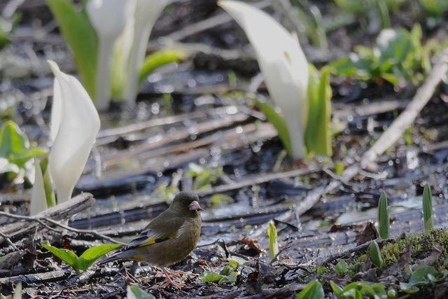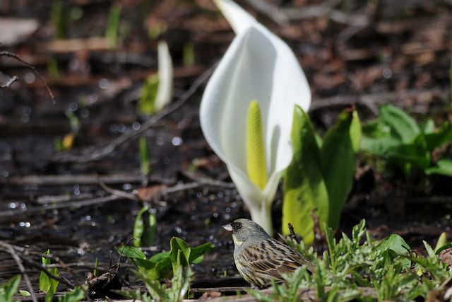 ・アオジ ・カワラヒワ ・カルガモ 水芭蕉との組み合わせを意識して写してみました。意外といいところに行ってくれず、またコントラストが強すぎて難しいものです。 |