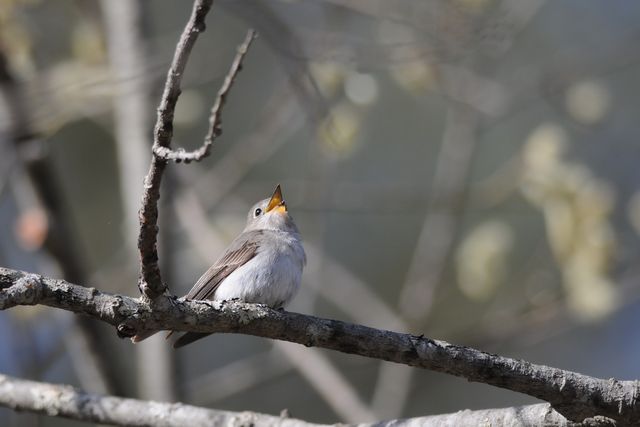 ・コサメビタキ ・コサメビタキ ・コサメビタキ ・コムクドリ コサメビタキは巣作りの最中のようでした。巣の周りを飛び回っていて、かわいい姿を何度も見ることができました。 時間を変えて行ってみると、上の方にはコムクドリの雄雌もいました。 |