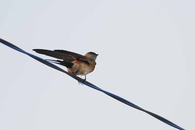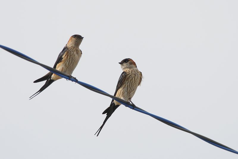 10.06.07 外房 漁港 ・ヒメアマツバメ ・ヒメアマツバメ ・コシアカツバメ ・コシアカツバメ ・コシアカツバメ ・ツバメ D300 300mmF4×1.4 ヒメアマツバメとコシアカツバメを同じところで見ました。コシアカツバメの巣を狙っているのでしょうか、大空を飛んだかと思うと巣に近づいていきます。コシアカツバメも同じような動きをしているようにみえました。こちらは、奪われまいとしていたのでしょう。飛ぶスピードはヒメアマツバメの方が速いように感じました。 |