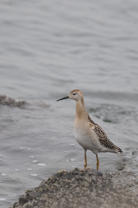 10.11.14 習志野市 ・エリマキシギ ・エリマキシギ ・イソヒヨドリ ・イソシギ ・ハジロカイツブリ ・ヒドリガモ ・タヒバリ ・モズ エリマキシギが見られるというので、行ってみました。カモたちがテトラポット付近で群れているのを見ていると、目に入ってきました。こちらの姿を見ても、平然と餌探しをしていました。いつまで滞在するのか気になるところですが、できるだけ長く居て欲しいものです。 ついでに、イソヒヨドリも探しましたが、雌を見ただけでした。イソヒヨドリは警戒心が強くて、釣り人の近くには行くのですが、レンズを持った私を見るとすぐに遠くに離れてしまいます。 イソシギやタヒバリも複数見ました。 |