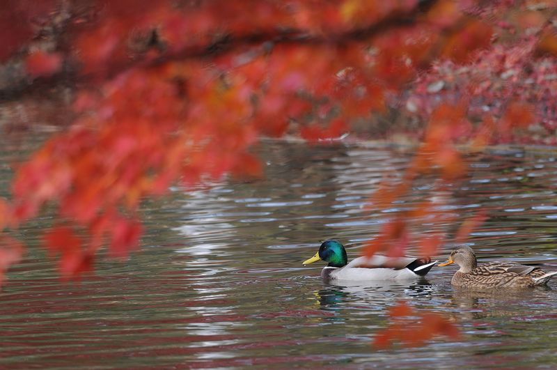 10.11.20 公園 ・ジョウビタキ ・マガモ 公園はカエデの紅葉がとてもきれいでした。マガモが近づくのを待って、赤色を入れてみました。 ジョウビタキも複数入っているようです。雄は見かけませんでした。 |
