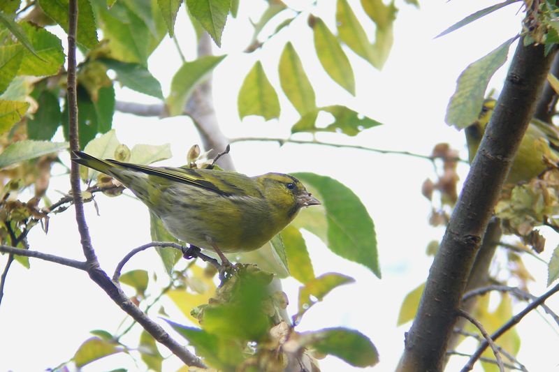 10.11.08 千葉市 ・マヒワ ・マヒワ ・ジョウビタキ 今年はマヒワが多いと噂されています。もしや、何年か前にKさんに教わったところにも来ているのでは、と思って行ってみました。50羽ぐらいの群れがいました。高い木の上です。食事をしているようでした。レンズを急に動かすと、敏感に反応して一斉にどこかへいってしまいます。同じことを2回繰り返してしまい、思ったようには写せませんでした。 |