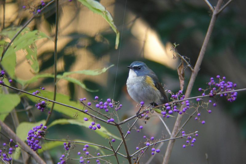 10.11.28 いつもの公園 ・ルリビタキ ・ルリビタキ ・ルリビタキ ・メジロ ・カワセミ いつもの公園にルリビタキがやってきました。ムラサキシキブの実のついたところで待っていると、実をついばみにやってきました。この実は、メジロも食べるらしく、口にいれていました。早朝で、気温も低くて、じっと待っていると体が冷えてきてしまいました。 カワセミは池の周りを飛んでいました。2羽みました。 |