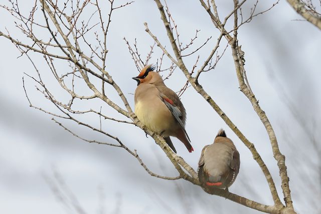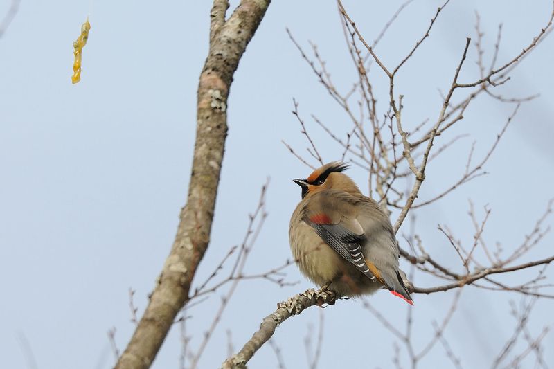 11.03.06 千葉県 ・ヒレンジャク ・ヒレンジャク ・ヒレンジャク ・ジョウビタキ ヒレンジャクは、今期初めて見ました。見つけてしばらくすると、近くの宿り木にやってきました。実がたくさんついています。おいしそうに食べていました。30〜40羽程度いました。 |