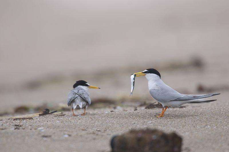 11.06.13 九十九里海岸 ・ハジロクロハラアジサシ ・コアジサシ ・シロチドリ ・コグンカンドリ アジサシやコアジサシに混じって、ハジロクロハラアジサシを見ました。 コアジサシは数は多くありません。小魚を受け取ってもらうのに成功しているもの、差し出したけれどあっさり、振られてしまうものなど様々です。カラスは卵を狙っていました。油断した隙に1個取られたようでした。 コアジサシに混じって、シロチドリも波打ち際をちょろちょろしていました。 ひとしきりコアジサシを観察して戻ろうとしたとき、海鳥が陸から海へ向かって飛んで来ました。くすんだ空でしたが、一応レンズを向けました。すぐに名前はわかりませんでしたが、調べてみるとコグンカンドリのようです。前日の天気のせいで避難してきたのでしょうか。 |