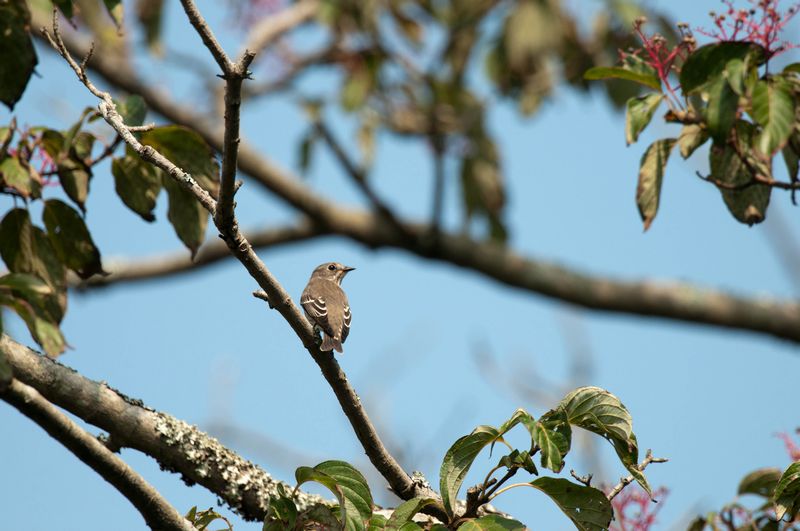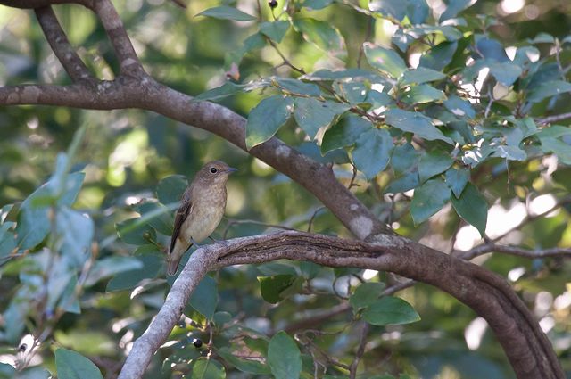 11.10.02 千葉県 ・ツツドリか ・エゾビタキ ・エゾビタキ シジュウカラやコゲラなどの混群を見ているとき、ふと目を転ずると、ツツドリらしいのが枝に1羽とまっていました。急いでシャッターを切りました。 しばらく待っていると、今度はエゾビタキが2羽やってきて、松の木のてっぺんにとまりました。少し下に来ましたが、まもなくどこかへ飛んでいってしまいました。今季はじめての出会いでした。 |