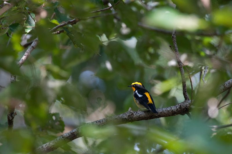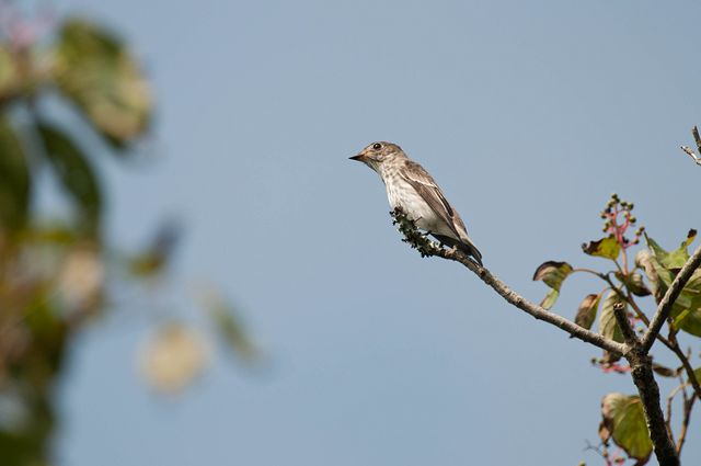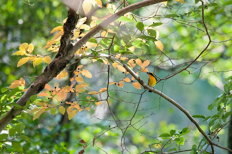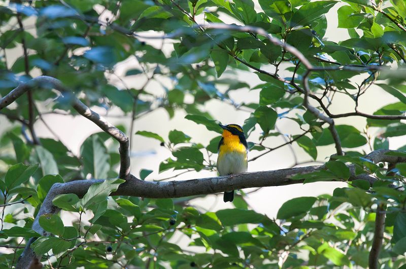 ・エゾビタキ ・エゾビタキ ・キビタキ♂ ・キビタキ♂ ・キビタキ♂ ミズキの実にエゾビタキが集まり、飛び交っていました。これまでは、一度に見た数はたいてい1、2羽程度でしたが、今回はそれ以上の数のエゾビタキを一度にみました。ちょっとうれしくなりました。 キビタキは、ヤマコウバシの実を目当てにきていて、近くを飛んでいました。美しい個体で、光が当たるとといっそうきれいでした。運良く実を食べるところを目撃しました。紅葉したヤマコウバシとその実をついばむキビタキの絵のような美しさに感動してしまいました。よい時間を過ごしました。 |