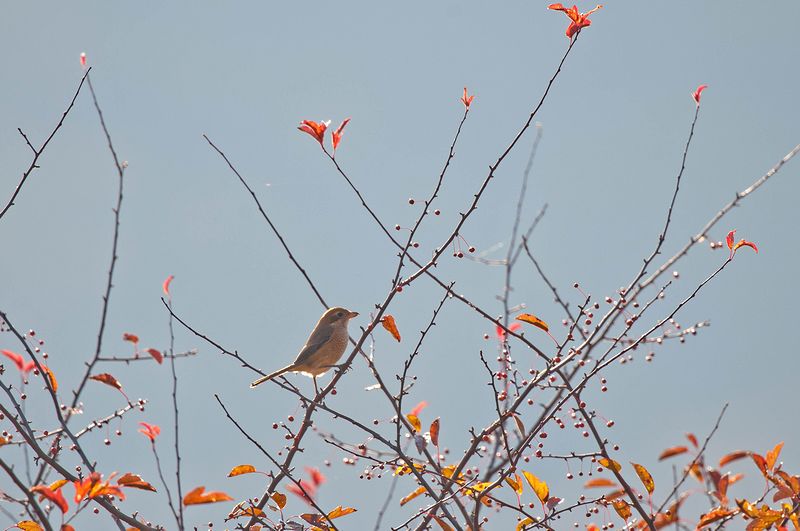 11.10.08 小田代ヶ原 ・ノビタキ ・ノビタキ ・ノビタキ ・ノビタキ ・ホオアカ ・モズ ・ヒガラ 湿原に湖が出現し、水面が木道の高さすれすれまで達していました。湖と紅葉した美しい風景を楽しむ人たちでいっぱいで、野鳥を観察する人はほとんどいない様子でした。 湖や紅葉を背景にノビタキ、ホオアカ、カラ類の姿を見ました。 |