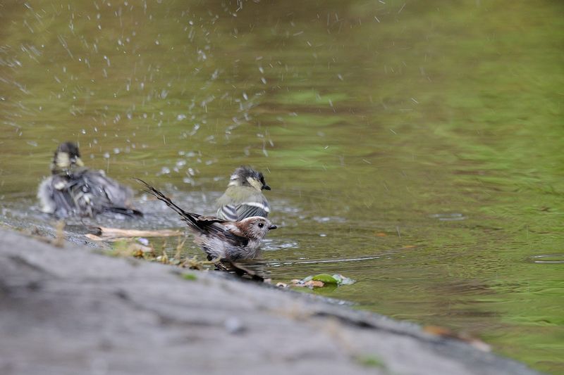12.07.16 ・シジュウカラ ・エナガ ・スズメ 木陰で、暑さをしのぎながら水浴びにくる鳥を待ってみました。お目当てはだめでしたが、幼鳥たちに会えました。 こすずめたちは食欲旺盛で、親鳥は餌の調達に忙しそうでした。 |
